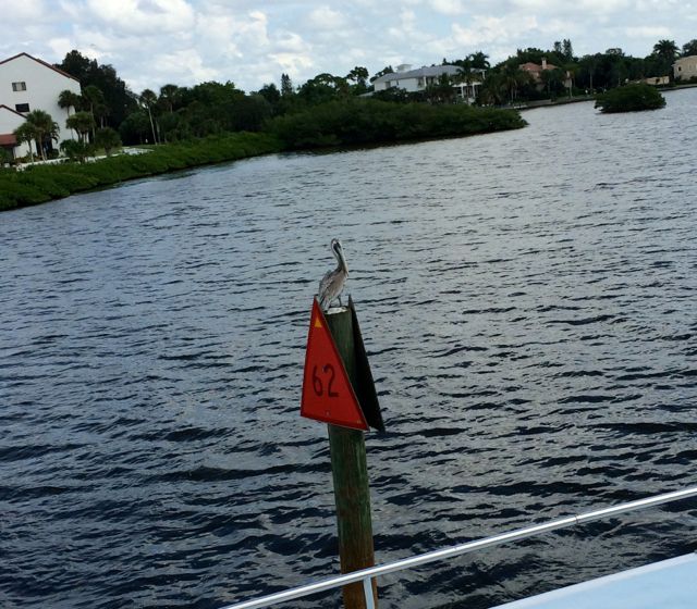 We saw Pelicans around the bridges as we transited the ICW. This fellow gave us the evil “eye”.