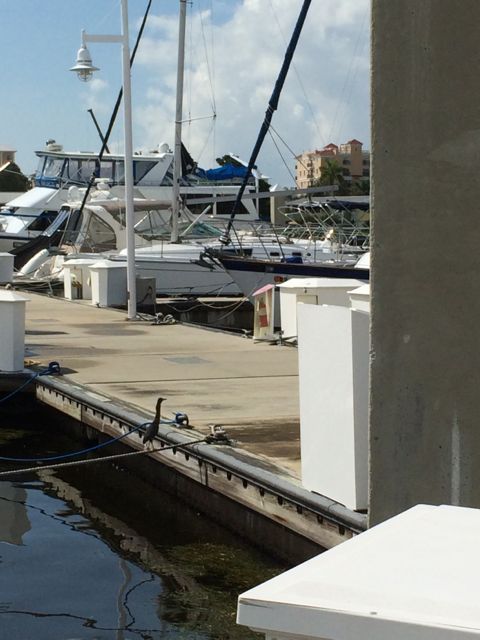 We see these yellow striped fish nibbling on pilings. Several of them, in fact. I think they are a “pin fish”. They are constantly nibbling. The Asst Dock Master was telling us “if only I could train them to clean the bottom of the boats…I’d be rich!”
