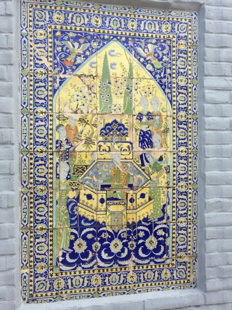 Right around the corner was this artwork. It is a tile piece imbedded in concrete wall. But, around the wall, you can’t tell anything significant. Just a side of a building selling Tshirts or a restaurant. Something definitely touristy. So, why here?