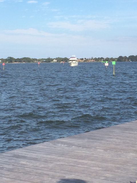 The boat is still in the ICW channel at this point. As it slows to make the turn into the private marina channel.