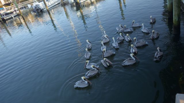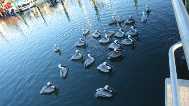 Whatever could they be talking about, you ask? Well, this is a big fishing community. Fishing boats short and tall in the above pictures. There are fish cleaning stations throughout the marina. I am sure, these pelicans are trying to determine when the next boat will come in and provide handouts.