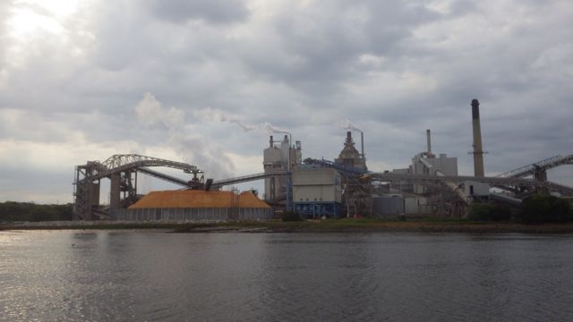 The paper mill was working full tilt. Isn’t that a huge pile of saw dust? Or wood chips?!