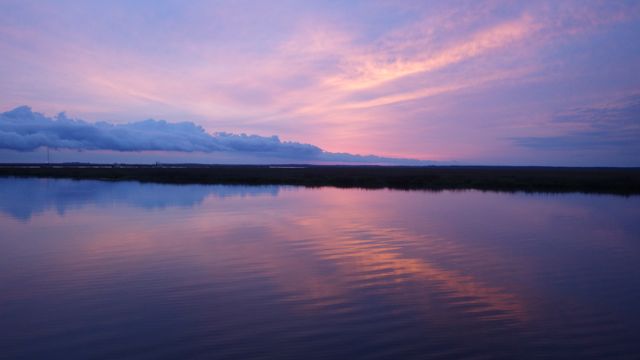 We were up at first light. Beautiful sunrise!! Red sky in morning – sailors warning? What is there for purple skies?