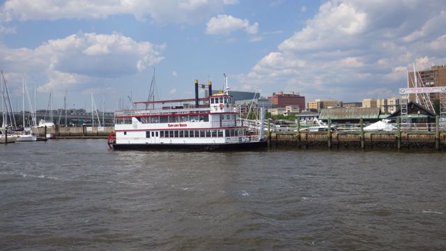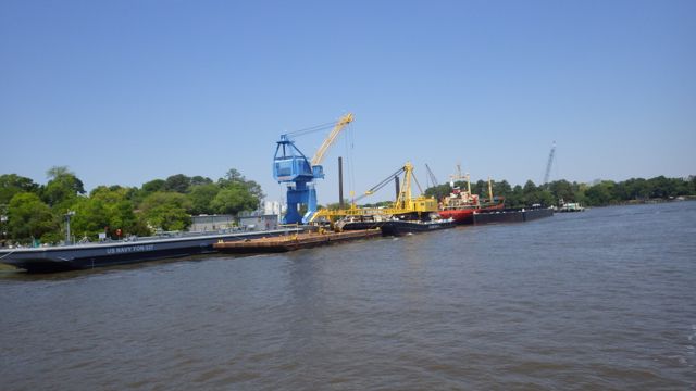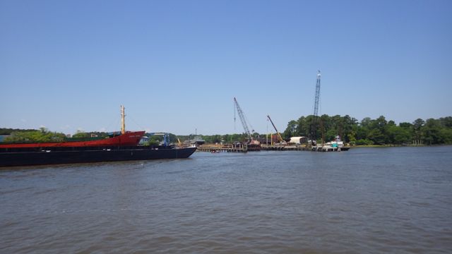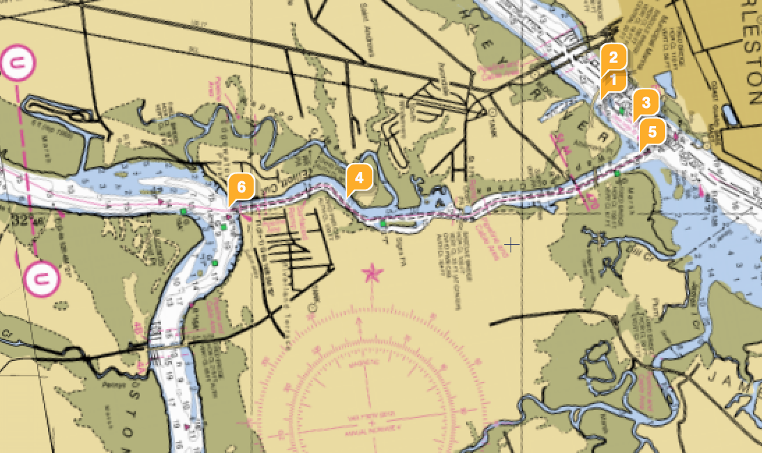 Into Ashley River and finding our way to the marina. I am busy with the binoculars scouting for boating traffic, commercial traffic, and more humans!