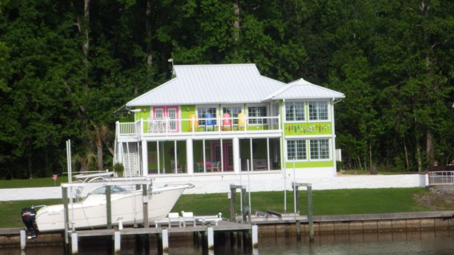 The maps ( charts ) say we were in the ICW – Intracoastal Waterway – which connects the Newport River to Adams Creek or “Adams Creek Canal”. Houses that caught my eye along this stretch of the waterway …
