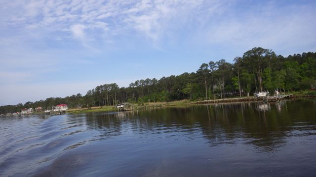 Adams Creek runs into Neuse River. Now this is a RIVER!! This river covers over 6,000 square miles with many tributaries emptying out into its basin. It is brackish to fresh water as many ocean fish come into the Neuse River basin to spawn. It is the longest river in NC. We were warned to boat on the Neuse River carefully since high winds can create big waves and uncomfortable rides. When we were crossing Neuse River, it looked more like a lake. Makes sense when I found out that at the mouth of the river, it is over 6 miles wide. Still, they call it a River. ( Adams Creek is a creek, after all.)