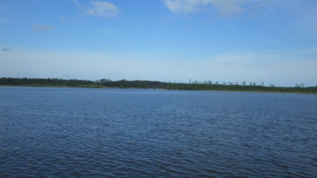 Reminds me of our Lake Okeechobee crossing with land in the distance. Far away but still visible.