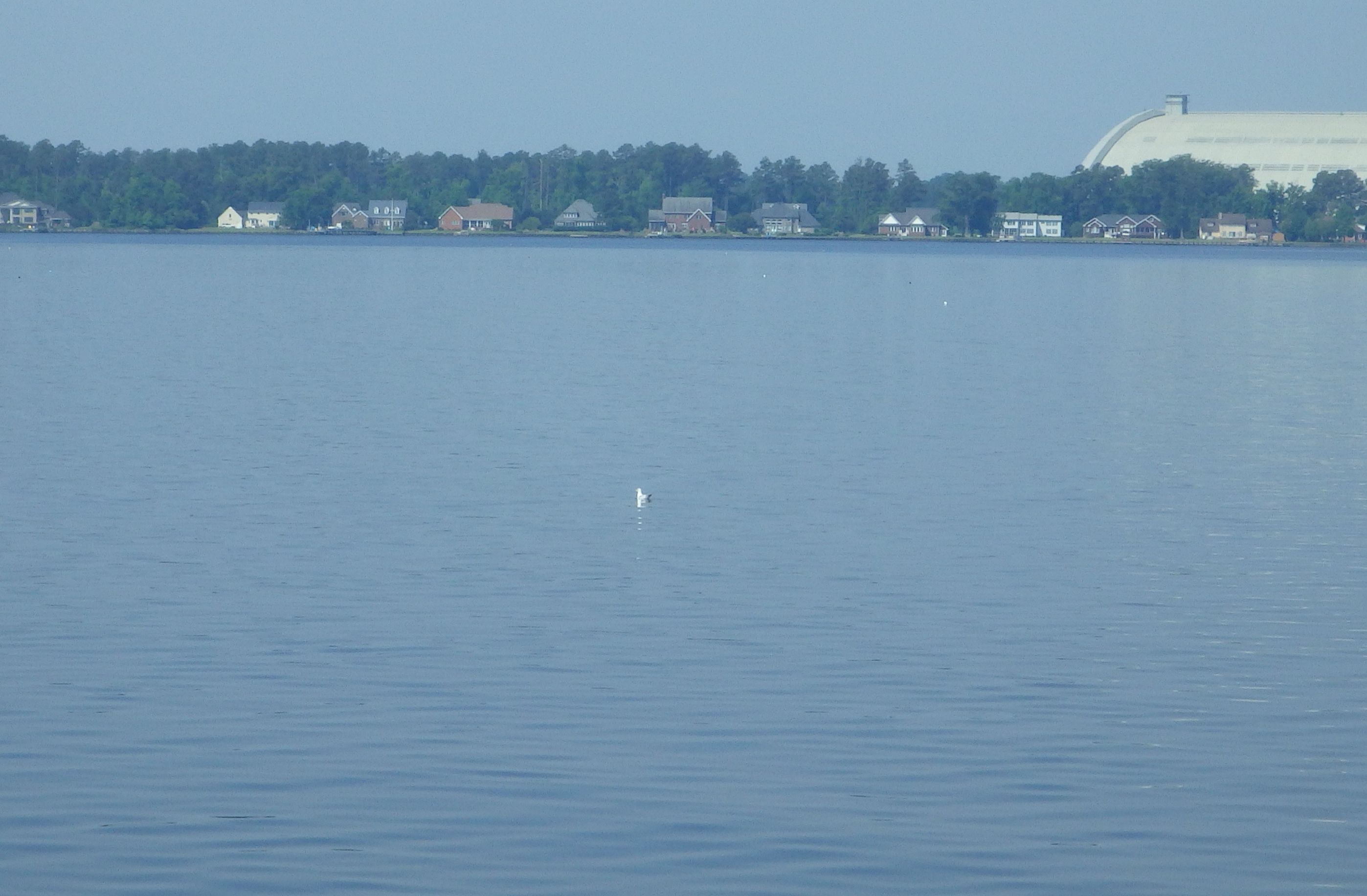 You see that large white rounding building behind the bird? We have been watching it as we came into the Pasquotank River. This is a distance shot. What do YOU think it could be?