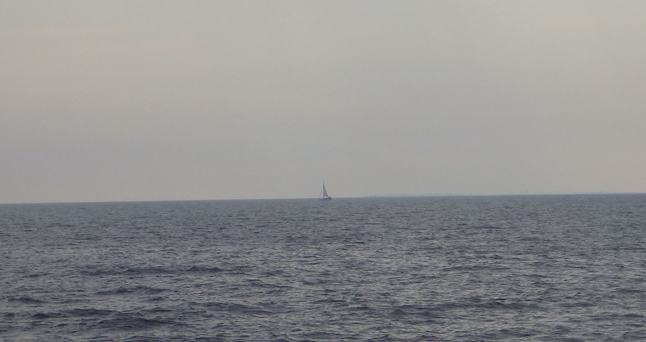We scanned the waters and saw a sail boat to the right of us. Not many boats on the water.