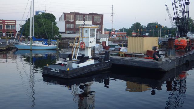 Before the bridge, we saw Little Mary tugboat waiting for her next load to push up and down the river.