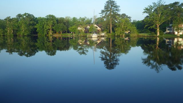 We are still in the Pasquotank River. Isn’t it beautiful!? We turned a corner on the river and saw what almost took our breath away, an awesome sunrise! Even Wayne thought it was something special.