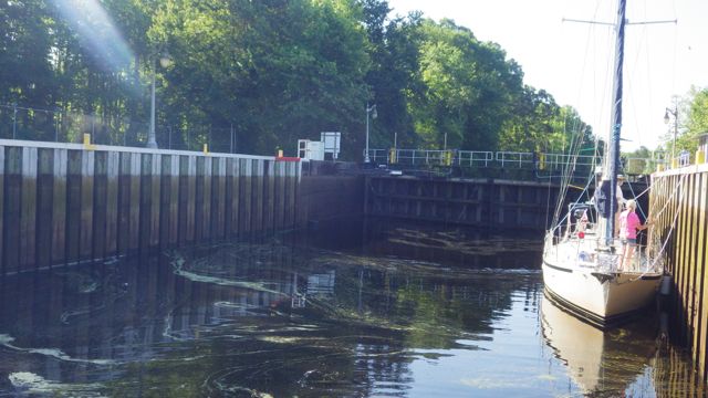 The sail boat came up about 5 minutes afterward we got to the lock. We told the Lock Master it was coming along. We were all patient. There was no southbound boats so we had all the time in the world.