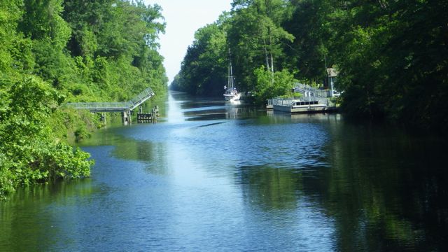 Many folks elect to go the Route One through the Virginia Cut to Norfolk, VA because the Dismal Swamp Canal is shallow. 6 feet means without limbs, debris, or any other obstruction. The Corp of Engineers try to keep the canal cleaned out, but oftentimes tree limbs fall into the water and sink. If you motor slowly enough and you hit a limb it should gently go back to the bottom. Generally, no harm to the boat. If you have a deep draft, you might just not be able to make it. We had read many folks with almost 5 ft draft have no problem. We were hoping the same for us.