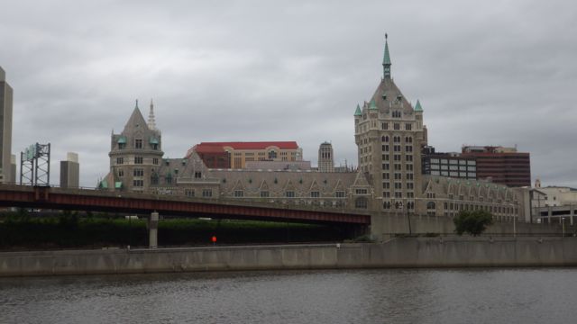We headed around to corner to the Federal Dam and Troy Lock. Troy Lock is sometimes referred to as Lock #1 on the Erie Canal. BUT it isn’t. Or the Corp of Engineers don’t think so. They manage this dam and lock. The NY Canal Corporation manages all the other locks on the Erie. You can see the lock to the right of the dam. Pretty impressive.
