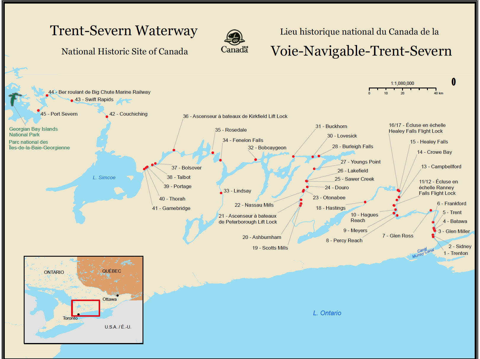Good Morning!! Only 6 locks today! I finally found a map of the Trent-Severn Waterway with the locks. Follow along, if you want!! Campellford town is just before Lock 13. The locks do not open until 9am or there abouts. Some don’t open until 9:30am. So 9’ish works. We are going to just past lock 18 today. That does equal 6 locks, right?