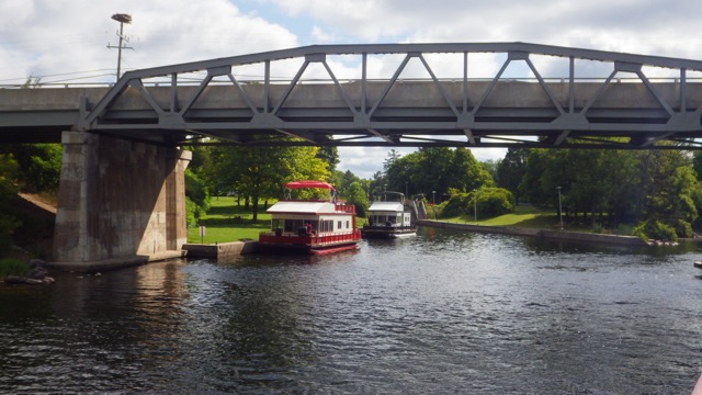 As we come into Bobcaygeon for the night, we found a dozen kayakers and canners on the water. They seemed not to mind any of the boats. As we approached our dock for the night, I finally acted like a school crossing guard…. “You guys go ahead, will ya? Hey you guys in the back – Hold up!! We need to sneak in there!” Finally, they looked up and saw our big boat coming close. No Problem. We snuck in at the end of the fuel dock right along the river at the Gordon Yacht Harbour.