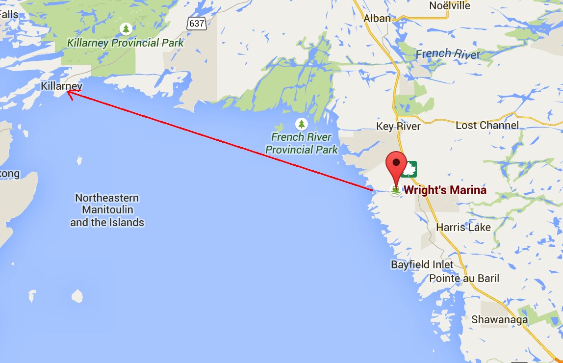 We are going to Killarney, ON today. We have to go on the outside since there is no inside route. We will be crossing over the most northern part of the Georgian Bay. Should be a 5 hour ride if the waves behave. 😉