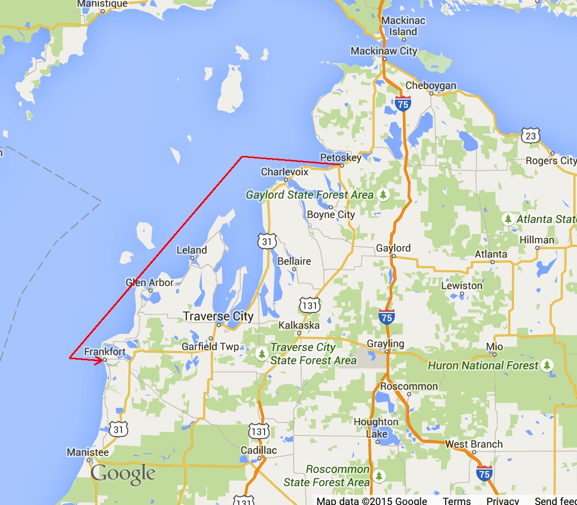 Our plan to day is to go around 90 miles from Petoskey to Frankfort. With the promise of a great day on the water with no rain, no wind, no waves, we thought we could make this trip easily. We will be traveling with fellow Loopers, the crew of SeaHorse.