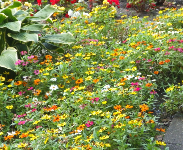 We have been seeing these butterflies for the last week or so. They flitter by the boat even on the open Lake Michigan waters. I was able to capture a picture of one amongst the flower bed.