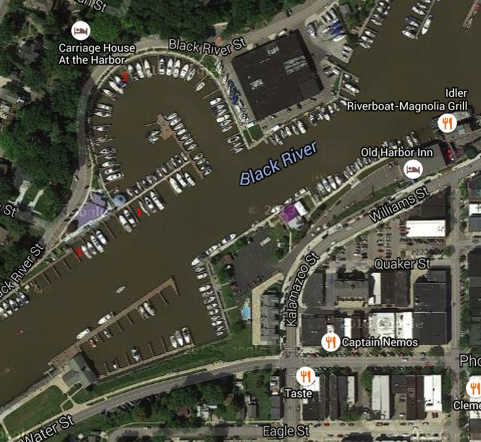 As you look at the map above, you can see we are on the north side of Black River. The town – restaurants, stores, and bars are all on the south side. We had the Park on our side. Actually, we were quite fine with the park. It gave us an opportunity to stretch our legs and check out the wild life in South Haven, MI. Both sides of the Black River has excellent boater facilities.