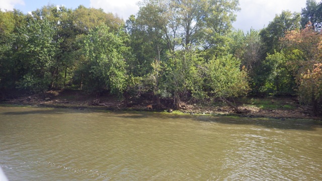 See all those water plants? They had huge leaves. Very healthy. Don’t get too close or they will grab your props and not let go! We left some of the industry behind and have more green trees and fields around us. Very nice change.