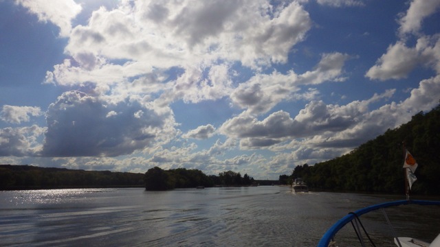 As you can see, this area is still quite industrial. Lots of barges hugging the river edges, factories loading their wares onto barges, and tows ( not tugs ) moving commerce up and down the river. We overheard a tow captain tell a lock master “yesterday I took 3 empties up river. I took 2 filled with manganese and 1 with urea down river.” Fascinating! Just like rail road cars…but on water!!
