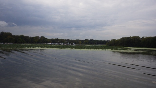Did I tell you we have 3 locks to go through today? The first one was so easy, I was excited that maybe all of the locks would be open and ready for the “fleet”. Alas, that wasn’t to be. When the first Looper boat got to the Dresden Lock he relayed back to us that it would be an 1.5 hour delay as a tow was being locked down. After that time had passed, again one Looper called the lock master to get an update. The Lock master told us we had another 1.5hour wait. We waited up river of the lock for 3 hours. One of the boats found some place to tie up. Most of the Loopers put an anchor in the water. We hovered in the middle of Illinois River. We really didn’t expect the wait to be so long. The water was pretty flat with a mild current. The wind wasn’t blowing too strong so holding our boat in the middle of the channel wasn’t too hard. Not too hard on me. Wayne was doing all the work. 🙂