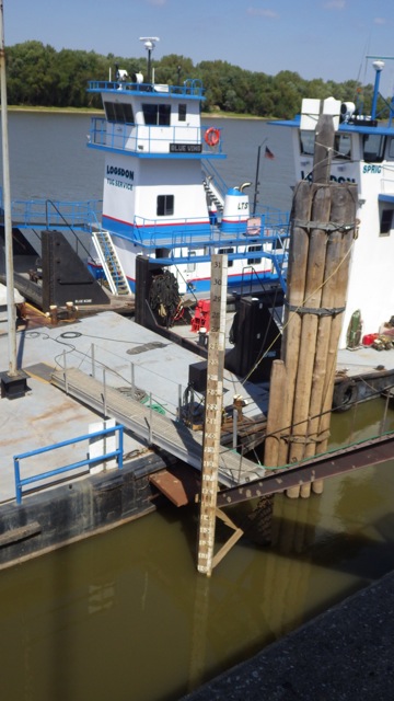 You see that ruler near the tall pilings in front of the tow? The ruler goes up to 31 feet. Do you see the water line mark above the 29 number? in 2013, the river crested at 29.8 feet!! Amazing!!