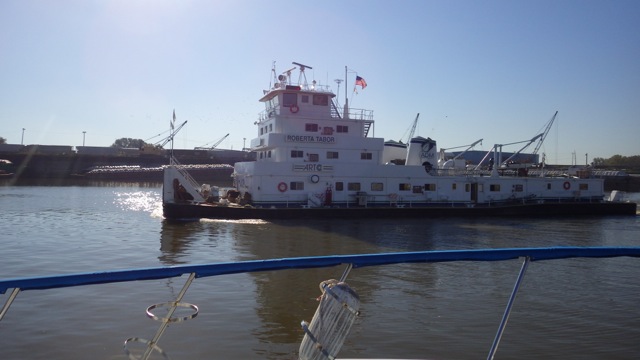 Good morning, Lock Buddies! We are planning to get up early and hope we can get an early lock through at the Mel Price Lock and the Chain of Rocks Lock ( #27 ). Fingers crossed!! We can see the lock from our back door. Surely, that will give us an advantage?