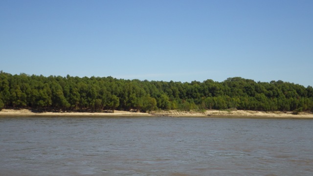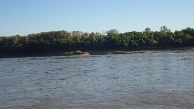 Wing dams! They are apparently supposed to help keep the Mississippi from silting in. According to Fern at Hoppies, that is debatable. The wing dams look like rock outcroppings to me. Something you certainly wouldn’t want to hit. Sand and shallow areas are sometimes visible behind the dams. Sometimes, not so much. The current changes around them.