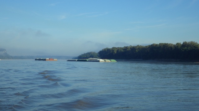 We encountered more barge traffic heading in both directions today than on the Illinois. The upbound or northbound barges have to overcome the 3 knot flow and can stir up quite a bit of wake behind them.