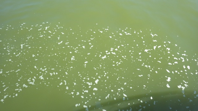 There were 5 Loopers in line to go through Lock 52 today. As before, we Pleasure Craft were told stand by and he would get back to us. The LockMaster told us we needed two 50 foot lines, bumpers ( yes he said bumpers ) on the port side, and have life vests on all occupants. I run around and get the “bumpers” or in nautical terms “Fenders” ready and deployed. I find our extra long lines we bought just for this purpose. I am geared up with my safety equipment standing at the ready on the bow. Then….we wait. As I am minding the time, I start looking at the suds floating by the boat. Hmmmm that one looks like a duck. That suds looks like a flower. A way to handle the stress of “wait over there and we will call you soon”. Several of us pulled over to the side of the river and dropped our anchor again not knowing how long it was going to take.