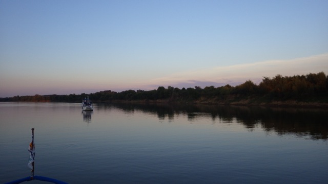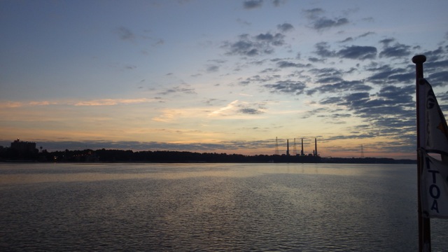 We were a bit concerned about our anchorage getting rocked by the passing barges. I didn’t really feel much wave action from them at all. The barges didn’t start coming by until early morning. One in particular had a strobe antenna array that looked like a lightning bolt. Everyone definitely saw him! I guess that is the point of night-time barging.