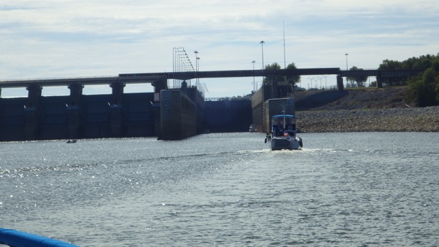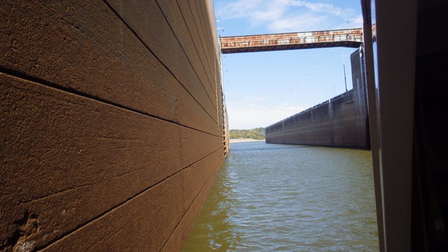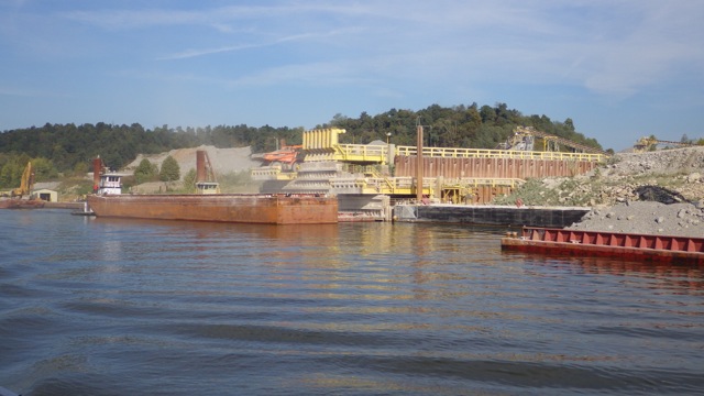 We continued up the Ohio until the Cumberland River to go over to Kentucky Lake via the Barkley Lock. This is an extra 25 miles but we read the Barkley Lock is easier to get through than the Kentucky Lock. Along the way, the scenery is trees or gravel pits.