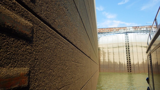 We were lucky! There was a boat in the lock already. One of our travel Loopers went ahead and let them know 2 more Loopers were on their way. When we rounded the corner, the doors were open and we just cruised right in. Great timing!! Thanks for waiting.