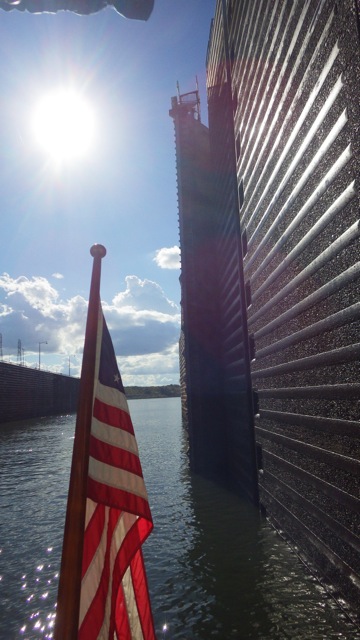Looked like a pretty day on the water. Sorry you had to wait so long to get through the lock. Am sure you both were tired puppies!!