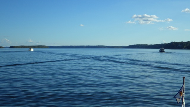 The Lock master asked us to lock through rafting to one another. The three largest boats would tie off to the 3 floating bollards. Then 2 each would raft off the largest boat. 3 by 3. It took awhile to get us all organized and rafted together. Going Up 55 feet! From start to finish getting all 9 boats in and out took almost an ‘our’ itself.