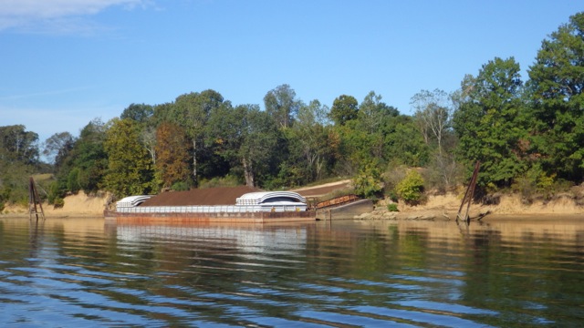 We always wonder what exactly is being barged up / down the river. Oil, chemicals, mulch? Sand, gravel, and what-nots.