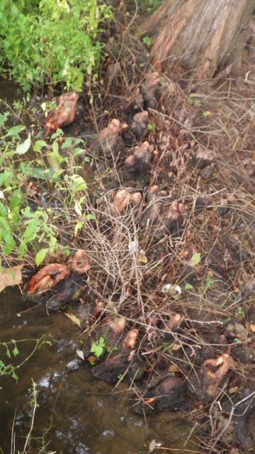 The other warning for boaters is to not cruise through large clumps of floating plants. The larger the clump, the more likely there is a log they have attached themselves to. From our slip, I pushed away a rather large clump. Yes, this clump had a log about 6 feet long and 6 inches diameter. It would do damage to a propellor for sure! Using my boat hook, I pushed away a number of clumps of plants throughout the day. They just kept coming into the marina from the river. The wind and current caught this clump and took it away from the docks into a swamp area. whew!