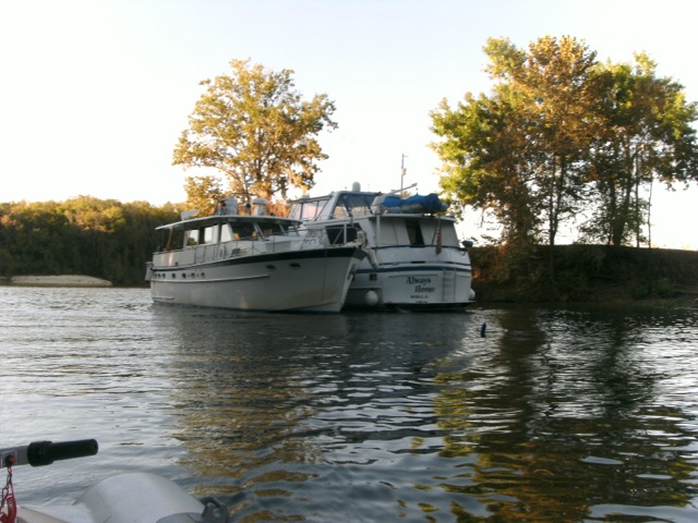 Lorelei IV and Always Home rafted together in the small creek opening. Each of us put out a bow anchor. In this way, no stern anchor was needed to keep us from swinging. Pretty neat. Thank you to the crew of Lorelei IV for this picture.