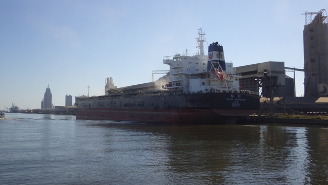 By mid afternoon we were finally approaching mile 0 at downtown Mobile, AL. We expect a great deal of activity as indicated by all the cruising guides. We are watchful of the tows, freighters, and barges.