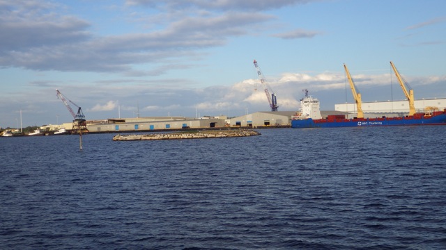West Bay becomes North Bay as we approached the Panama City Port Authority. You can tell that is a very busy place with the cranes and barges around the area.