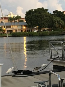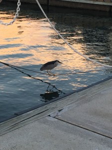 Our shy Night Heron. And his pals on boat lines waiting for small fish / minnows to drift by.